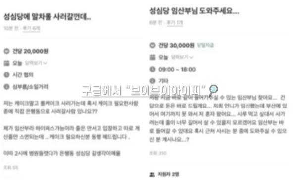 성심당에 방문할 예정이라는 A 씨는 “지금 바로 같이 (성심당에) 들어갈 수 있는 임산부를 찾는다. 건당으로 사례금 3만 원을 드리겠다”며 “딸기 시루를 사려는데 줄이 너무 길어서 살 수 있는지 모르겠다. 임신부는 바로 들어갈 수 있다더라. 근처 사시는 분 중 도와달라”고 적었습니다.
