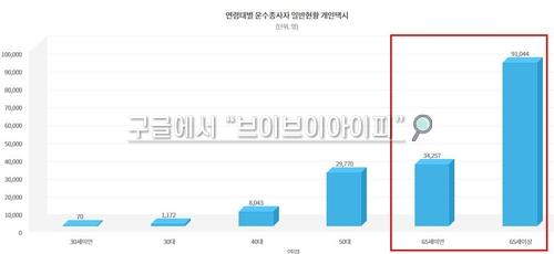 법인택시의 경우 기사 7만3천여명 중 65세 이상이 35.7%(2만6천여명)로 개인택시보다는 덜하지만 역시나 고령화가 진행 중이다.