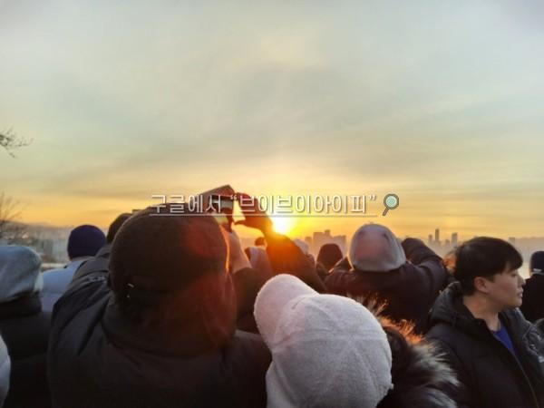 두꺼운 패딩과 털모자, 목도리로 중무장한 시민들은 영하 10도에 이르는 맹추위에도 뽀얀 입김을 내뱉으며 첫 일출을 기다렸다.