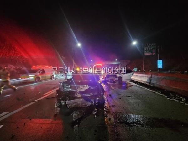 4일 전북경찰청과 전북소방본부 등에 따르면 이날 오전 1시23분쯤 전북 고창군 고수면 우평리 서해안고속도로 상행선 고창 분기점 인근에서 차량 2대가 부딪히는 1차 사고가 발생했다.