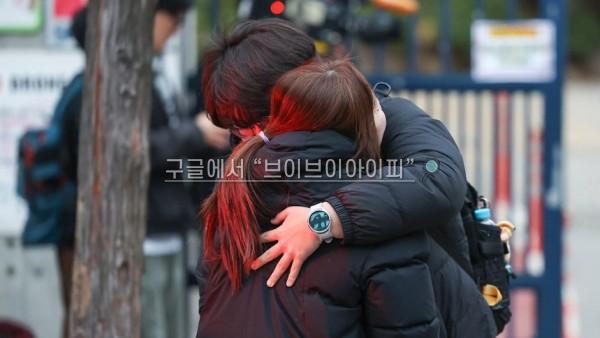 "내 새끼, 잘 봐" "엄마, 울지 마"…고사장 앞 뜨거운 포옹