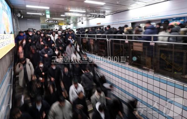 버스정류장이 한산한 반면 지하철은 출근 시간이 다가올수록 붐비기 시작했다.