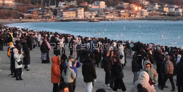 경주에는 이날 한파가 몰아쳤지만, 일출 명소인 이곳에는 수천 명이 찾았다.