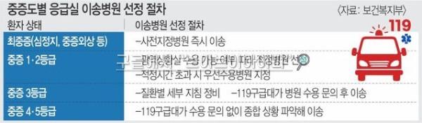 중간 단계인 3등급 환자는 언제든지 급격하게 상태가 악화할 수 있어 사전에 환자 정보를 공유하고 수용 가능 여부를 문의해 병원을 찾는다. 비교적 경증인 4~5등급은 수용 문의 없이 이송 병원이 결정된다.