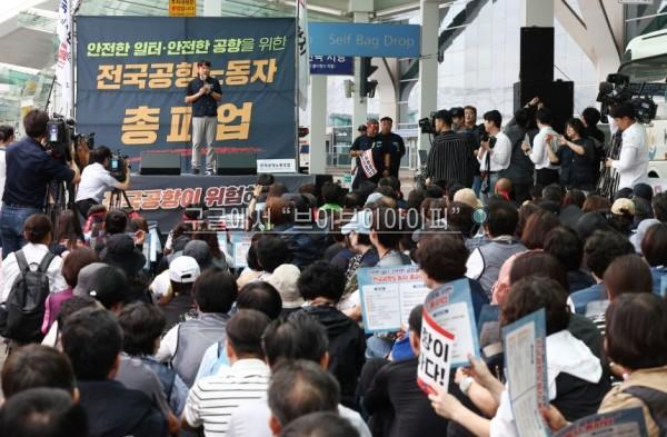 전국공항노동자연대는 이날 오전 6시부터 무기한 전면파업에 돌입한다고 밝혔다.