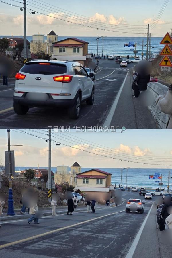 문제는 안전이었다. 수십 명의 사람들은 바다를 배경으로 텅 빈 도로 위에 서 있는 자신과 일행의 모습을 담고자 차도 위를 분주히 오갔다. 차가 지나갈 때만 잠시 옆으로 비켜섰다가 도로 중간으로 모이기를 반복했다. 모두가 동시에 차를 피하는 모습이 재미있다는 듯 "꼭 게임하는 것 같다"는 소리도 들렸다.