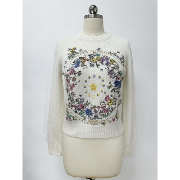 • 디올 자수 스웨터 화이트 캐시미어 니트 & 멀티 컬러 Dior Astral Flowers 모티브 554S57A0037_X0824 36 38 40 #타지아
