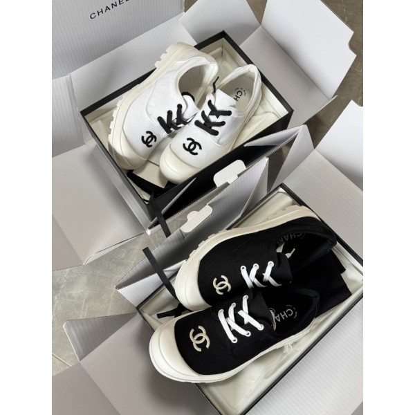 • 샤넬 CC 25SS 로고 화이트 레이스업 스니커즈 35~40 굽 3cm