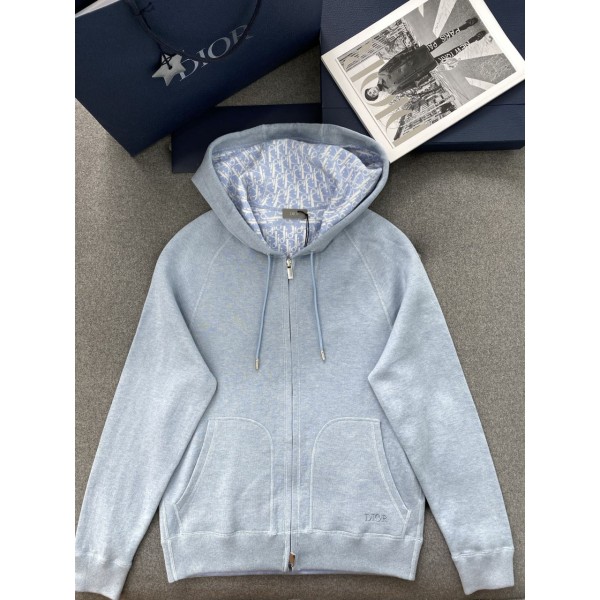 • 디올 후드 트랙 재킷 블루 코튼 캐시미어 니트 113M221AT225_C565 S M L XL