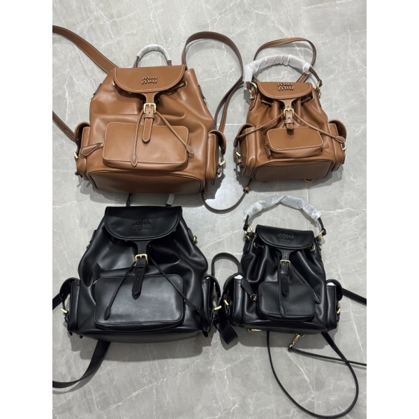 미우미우 (Miu Miu) 가죽 백팩 (5BZ042_2CRW_F0046_V_OOO) 코냑 브라운, 블랙 색상의 멀티 포켓 #vvip공장 > 가방