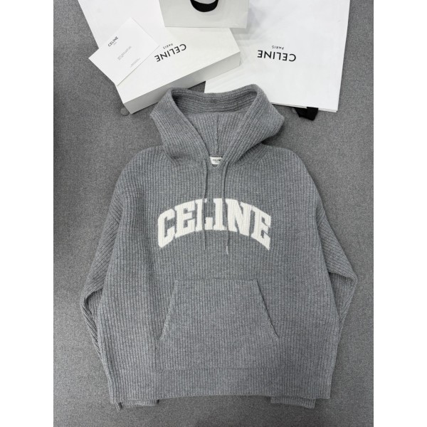 셀린느 CELINE 로고 자수 버진 울 후드 티셔츠 XS S M L > 의류