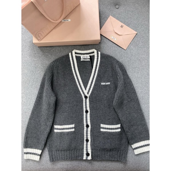 미우미우 립드 니트 울 앤 캐시미어 가디건 슬레이트 그레이 MMF929-150H-F0480 38 40 42