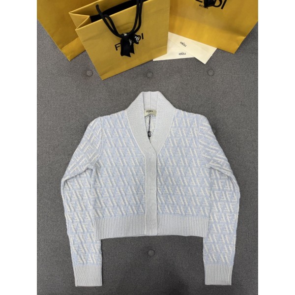 • 25SS 펜디 여성 플로트 FF 가디건 + 스커트 파우더블루 FZE504ATPLF1R0P 38 40 42