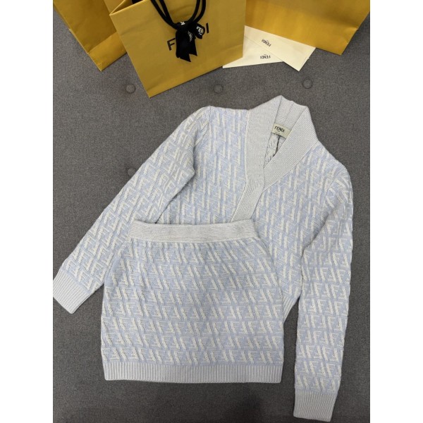 • 25SS 펜디 여성 플로트 FF 가디건 + 스커트 파우더블루 FZE504ATPLF1R0P 38 40 42