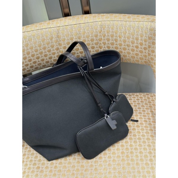 • 더 로우 파크 토트 쓰리 캔버스 코튼 캔버스 백 레더 브라운 베이지 블랙 W1892W188L72BBCS