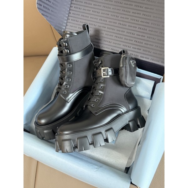 프라다 모놀리스 브러쉬드 레더 앤 나일론 부츠 블랙 Prada Monolith Brushed Leather and Nylon Boots Black 2UE007-3LFR-F0002 35~40