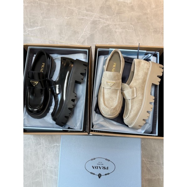프라다 PRADA 로고 레더 플랫폼 로퍼 35~40 굽 5cm