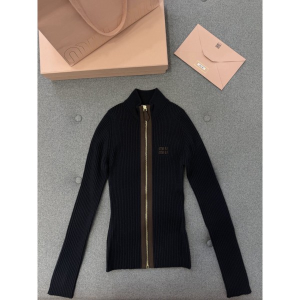 미우미우 캐시미어 가죽 가디건 Cashmere and leather zipper cardigan MMF992 1747 F0008 S OOO 38 40 42