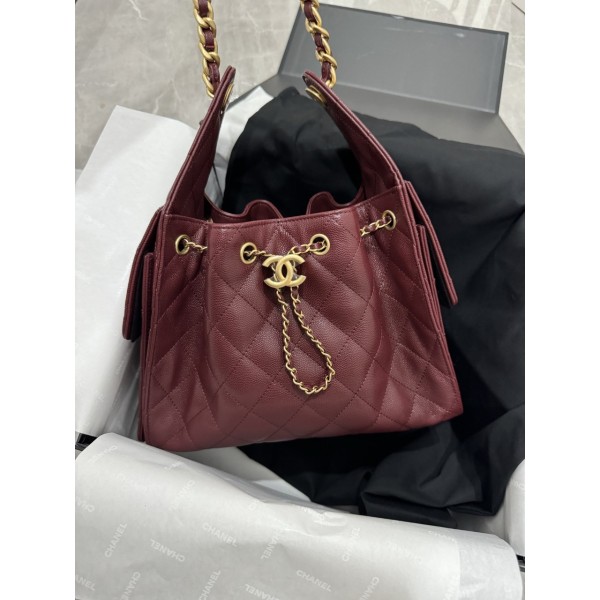 • 샤넬 25백 캐비어 스몰 뉴시즌 금장 골드 버건디 AS5293 28*14*21cm #vvip공장