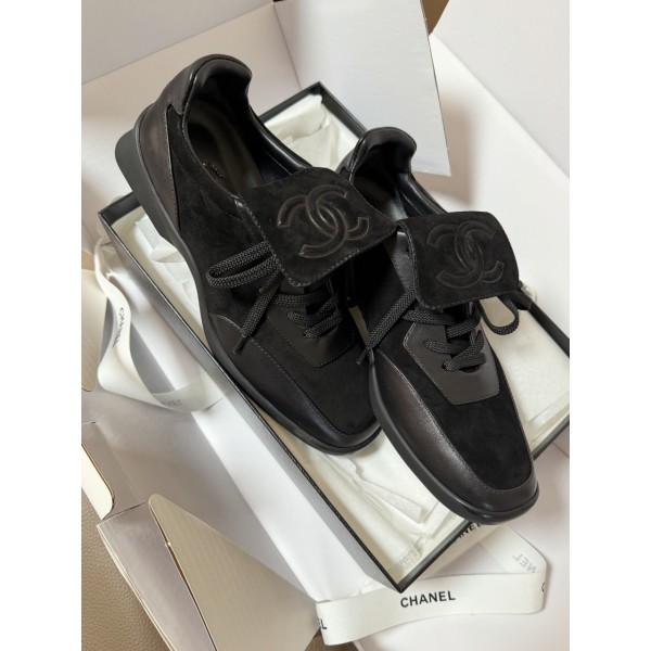 Chanel 샤넬 COCO 로고 스티치 블랙 레더 여성 스니커즈 35~40 굽 3.5cm