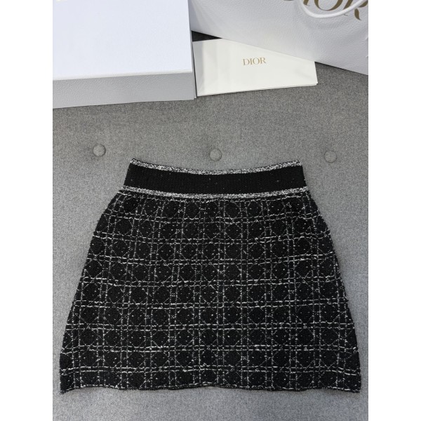• 디올 매크로까나쥬 테크니컬 코튼 니트 플레어 미니스커트 블랙 화이트 424J03AM752-X9101 38 40 42