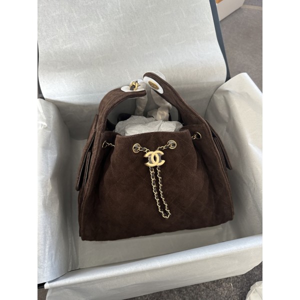 • 샤넬 2025/26가을-겨울 CHANEL 25 스몰 백 스웨이드 카프스킨, 골드 메탈 다크 브라운 AS5293 #vvip공장