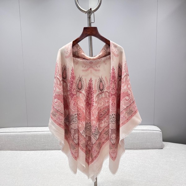 • 로로피아나 Yoyogi 아카이브 패턴 실크 캐시미어 숄 화이트멀티 FAN9544 T1GF 140*140cm 캐시미어 100%