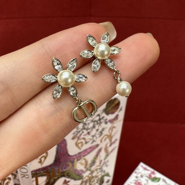 • 디올 블룸 인 디올 이어링 골드 피니쉬 메탈 화이트 레진 펄 실버 톤 크리스탈 E4004WOMCY-D03S #폭스샵