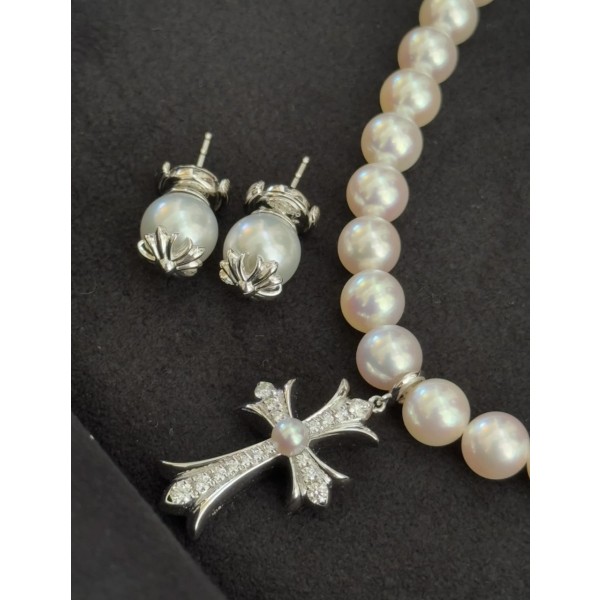 크롬하츠 Chrome Hearts 플러스 귀걸이 이어링 진주와 실버 소재 #폭스샵