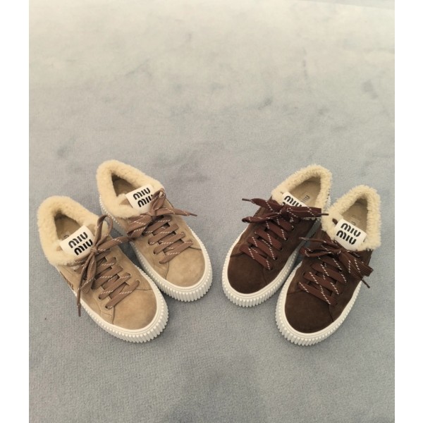미우미우 스웨이드 앤 셔링 스니커즈 데저트 베이지 Miu Miu Suede and Shearling Sneakers Desert Beige 5E389E-Z0G-F0F24 35~40 #폭스샵