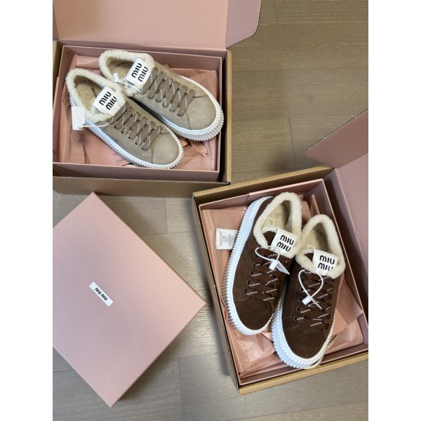 • MIU MIU 미우미우 셔링 라이닝 스웨이드 플랫폼 스니커즈 35~40