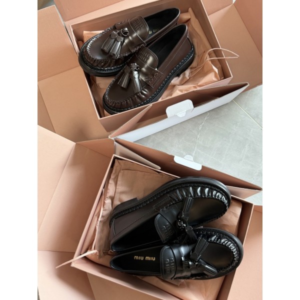 25FW 미우미우 폴리시드 가죽 테슬 로퍼 5D497E 055F0003 35~40 굽 3cm