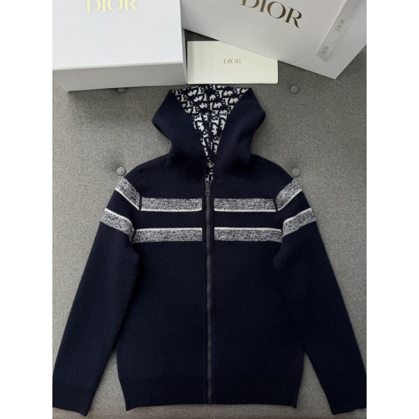 • 디올 리버서블 후드 지퍼 가디건 블루 Dior Oblique 모티브 캐시미어 블렌드 니트 054G12AM055_X5820 38 40 42