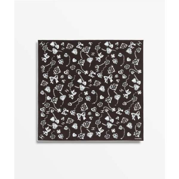 • 샤넬 실크 트윌 스퀘어 스카프 화이트 블랙 AAB294-B21544-U2909 90*90cm 100%실크