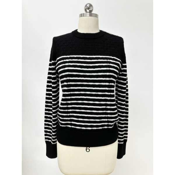 • 샤넬 25FW 스트라이프 니트 풀오버 캐시미어 스웨터 CC 버튼 에크루 블랙 P80157 36 38 40 #타지아