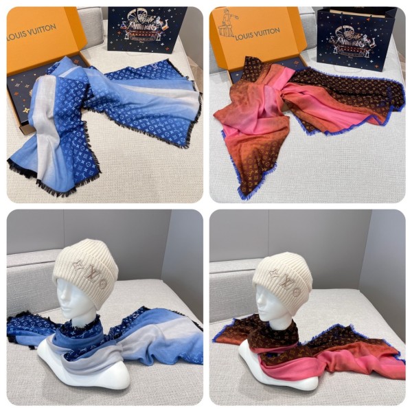 • 루이비통 그라디언트 자카드 링 캐시미어 스카프 머플러 180*110cm 캐시미어 100%