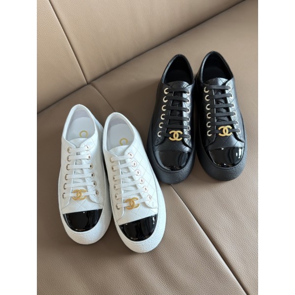 샤넬 25A 공방 레더 트위드 스니커즈 CC로고 펜던트 투톤 블랙 화이트 G46620 35~40