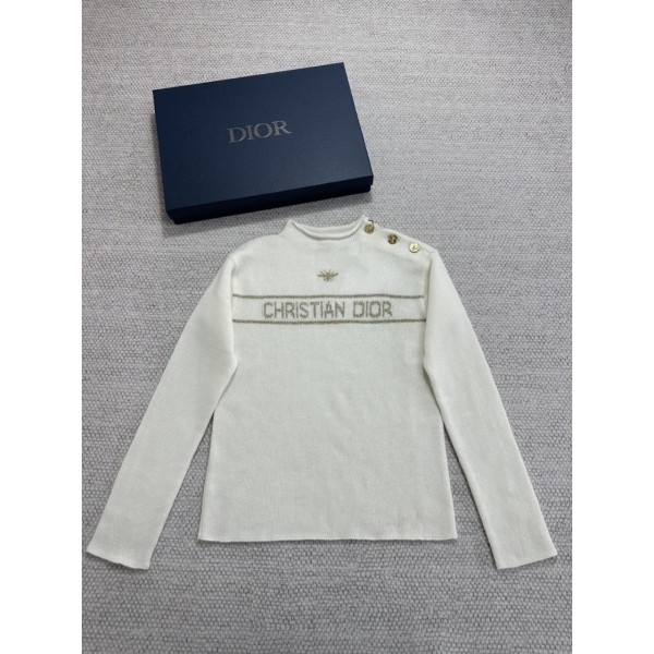 • 디올 스웨터 에크루 & 골드 톤 캐시미어 블렌드 니트 614S94B0549_X1998 36 38 40 #타지아