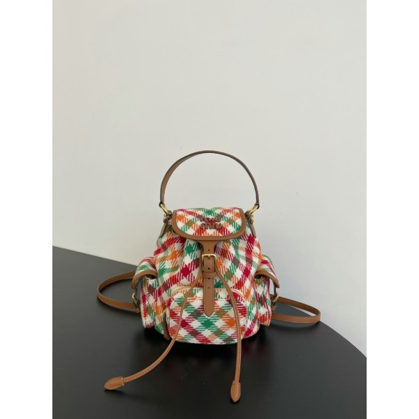 미우 미우 플래드 레더 백팩 레드 그린 Miu Miu Plaid and Leather Backpack Red Green 5BZ043-2IFK-F0Q6N 스몰 22*18*11.5cm / 라지 29.5*25*12.5cm > 가방