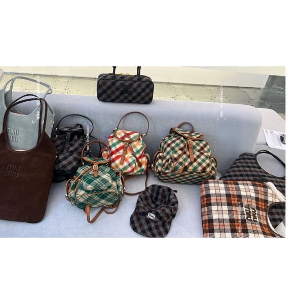 미우미우 MIU MIU 플래드 울 파우치백 토트백 숄더백 14*18.5*10cm > 가방