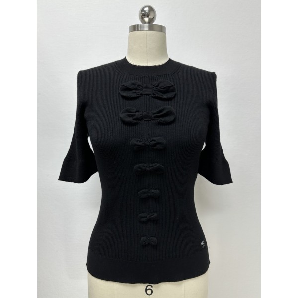 • 샤넬 Chanel 25K 리본 장식 반소매 울 니트 탑 36 38 40 #타지아