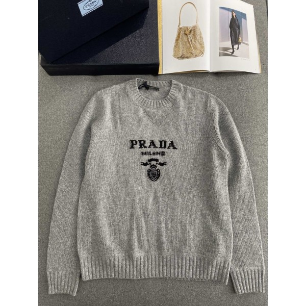 프라다 울 캐시미어 크루넥 스웨터 블랙 그레이 UMB223-1YMW-F0031 46 48 50 52