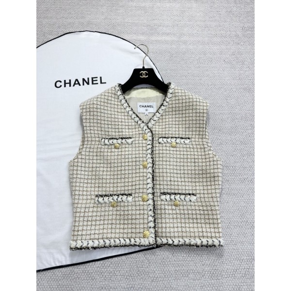 샤넬 2025/26가을-겨울 베스트 조끼 P80460-V73021-U3821 울, 모헤어 트위드 에크루, 베이지, 골드, 블랙 P80460-V73021-U3821 36 38 40 #타지아