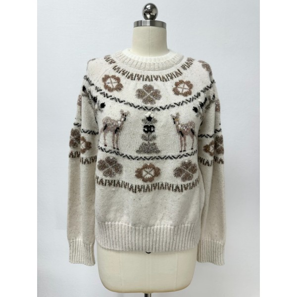 • 샤넬 25N 코코네쥬 풀오버 캐시미어 니트 사슴 CC로고 스웨터 에크루 베이지 P79701 36 38 40 #타지아