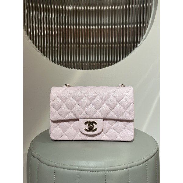 샤넬 CHANEL 클래식 뉴미니 플랩백 캐비어 핑크 샴페인골드 20cm #지존샵