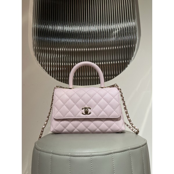 샤넬 CHANEL 코코 핸들 스몰 플랩백 핑크색 캐비어 샴페인골드 14*24*10cm #지존샵