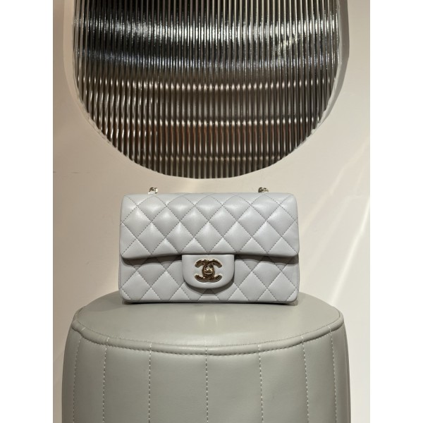 • 샤넬 CHANEL 클래식 뉴미니 플랩백 램스킨 라이트그레이 샴페인골드 20cm #지존샵