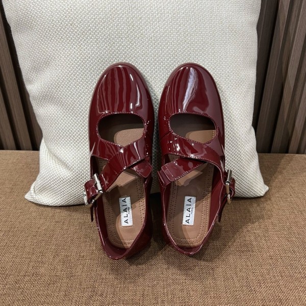 알라이아 Alaïa 크리스 크로스 페이턴트 레더 발레리나 플랫슈즈 35~41 > 신발