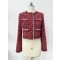 샤넬 25FW 25K 트위드 자켓 체크 자수 숏 재킷 라운드넥 레드 핑크 블랙 P80457 36 38 40 #타지아